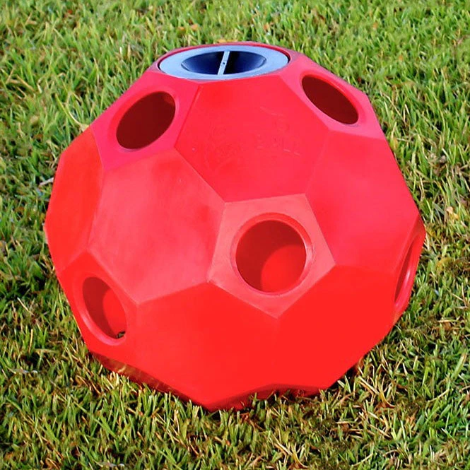 The Burlingham Sports Hay Ball Feeder is an innovative way to feed your horse its daily forage intake. The Hay Ball Feeder simulates a natural grazing position and is suitable for use indoors or outdoors for horses, ponies, goats, and sheep. Highly durable and easy to fill. Great for horses that are on a diet or prefer to limit hay intake. Made in the USA. *Not intended for Miniature Horses.