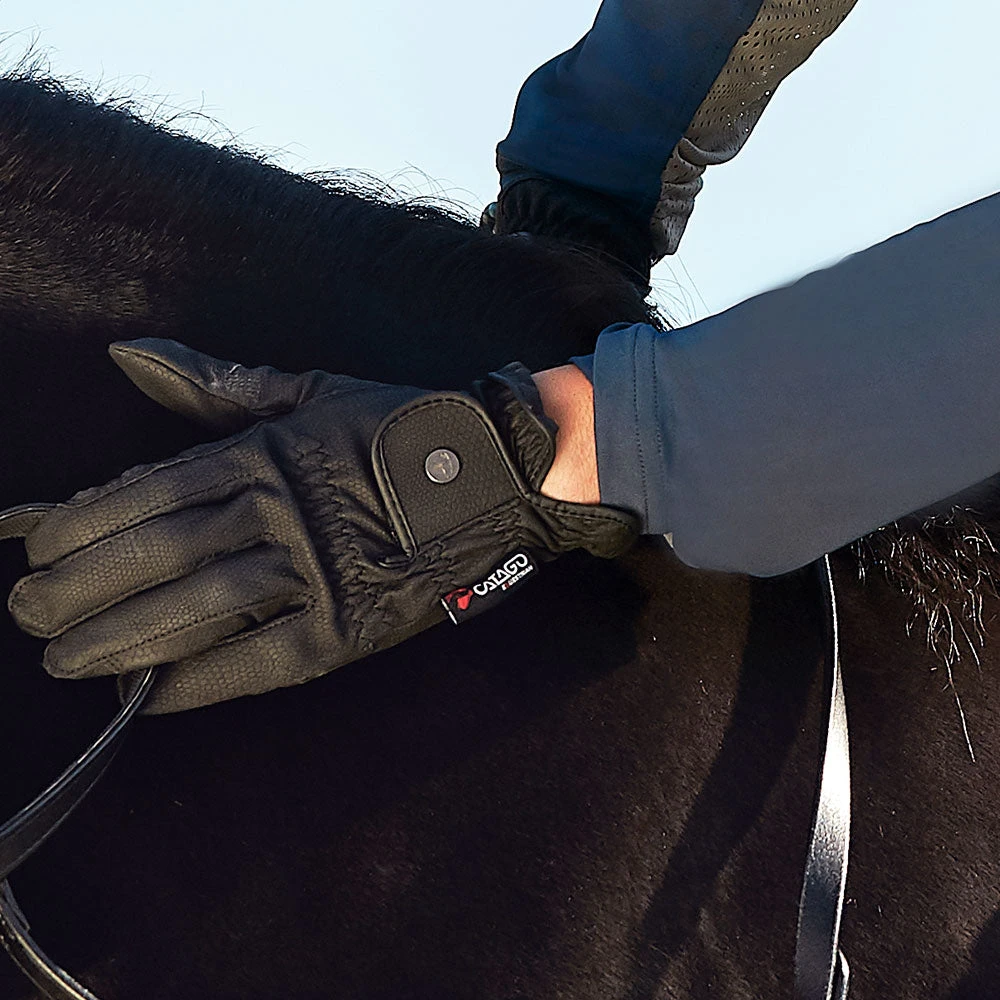 Fir-Tech Elite Show Gloves are made from breathable, technical PU material with a high level of stretch for added comfort. Catago Elite Show Gloves have added grip on the rein and extra reinforcement in places that are most exposed to wear. Lined with Fir-Tech ceramic fibers to reflect body heat and increase circulation. Catago Fir-Tech Elite Show Gloves come in sizes 6.5 -10 and are available in Black.
