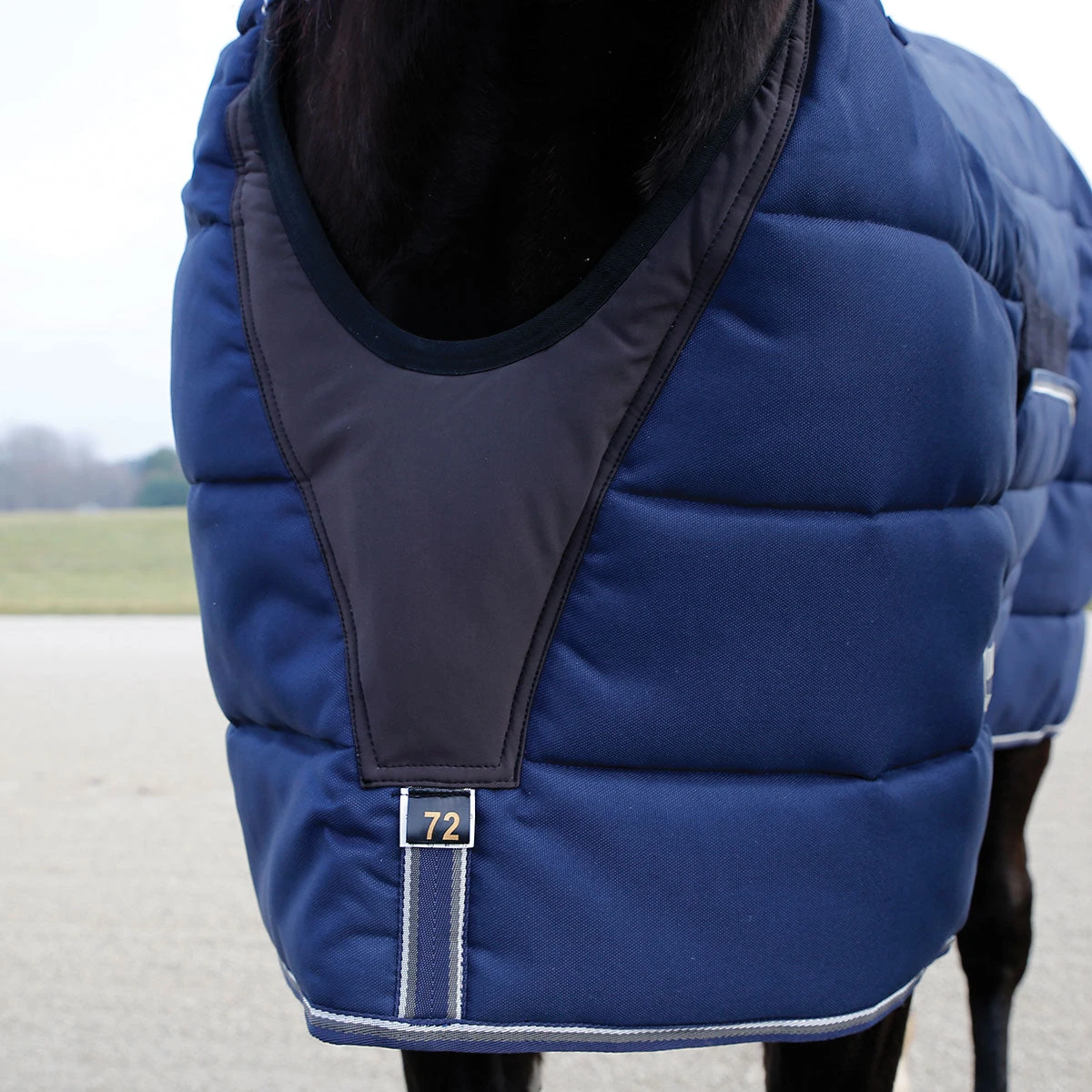 If you need a blanket that will keep your four-legged friend bundled up during frigid winter nights, look to the Squall 1200D Heavyweight Bellyband Stable Blanket from Country Pride! Quilted for super comfort and warmth, this sleek stable blanket has a durable 1200 denier outer shell that resists snags, pulls, and tears while smoothing hair, preventing rubs, and resists against sawdust, shavings, and hay from clinging to it. Innovative technology includes a flexible elastic front to allow a full range of motion and movement when in their stall. With a warm 550 gram insulation, wide bellyband, and full quilted craftsmanship, you can rest assured that your horse is snug and tucked in when it’s cold outside.