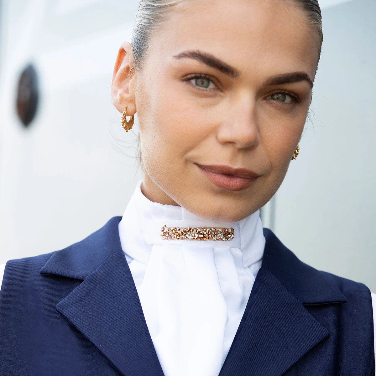 Equetech Deluxe Ready Tied Stock Tie are exquisitely detailed hand-made show stocks, perfectly designed to suit all disciplines. These lovely ties feature a Velcro closure in the back for easy application. The Rose Gold Crystal edition makes the perfect compliment to any show coat with a beautiful array of rose gold crystals for the ideal touch of shimmer in the show arena.