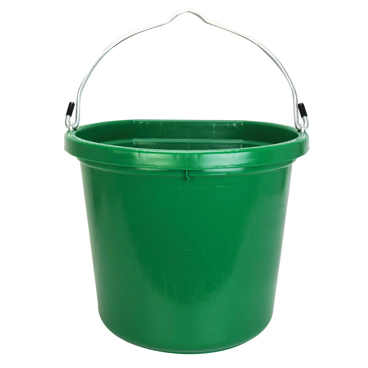 Fortiflex 20 qt plastic water bucket with a flat back. The flat back allows the bucket to lay flat against the wall and provide ample space for the horses head to fit comfortably to drink.