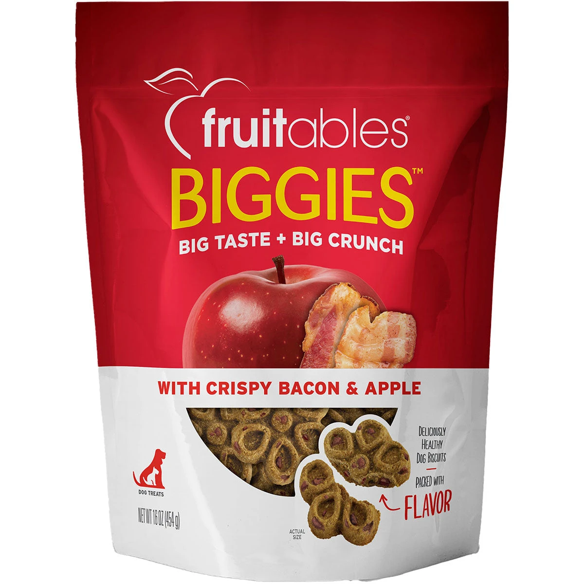 Bacon and apple flavored biscuits that your dog is sure to love. Packed full of flavor with a fun crunch! Made with real healthy ingredients. Fruitables Biggies Biscuits are oven-baked. Great for all dogs.