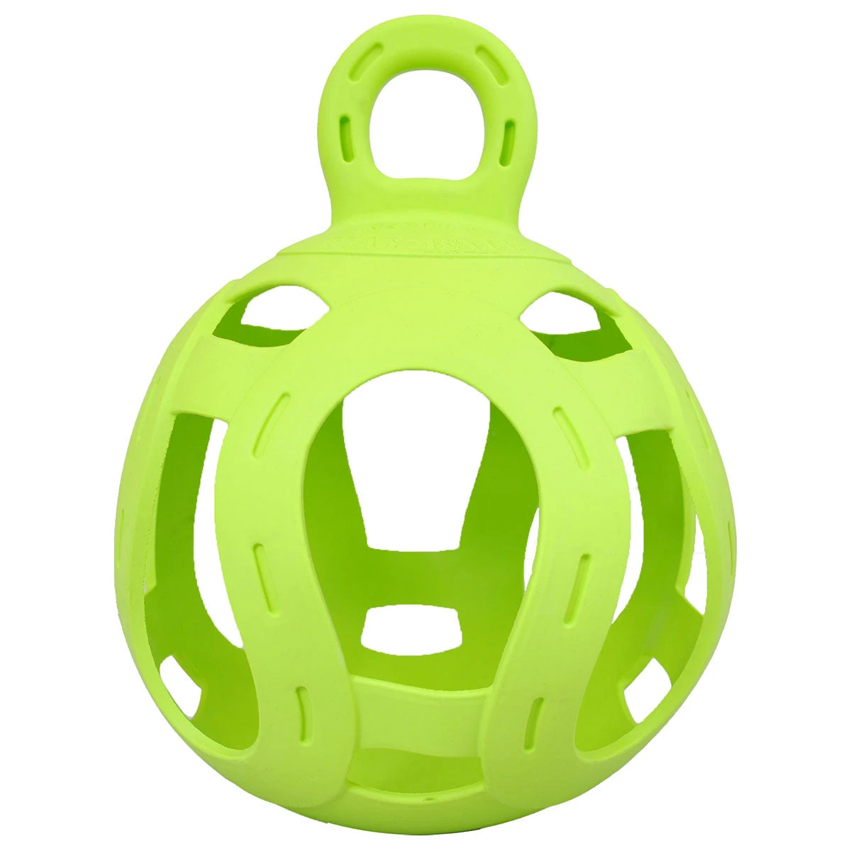 The beloved Jolly Ball meets interactive hay dispenser with the exciting Jolly Hay Ball! from Horsemen’s Pride! Stuff with hay, carrots, apples and hang for your horse, pony, goat, or other livestock for a mentally stimulating way to feed or treat! Smaller holes can be stuffed with apple chunks, carrots or other favorites for extra enticement. Highly durable and meant for play indoors and out.