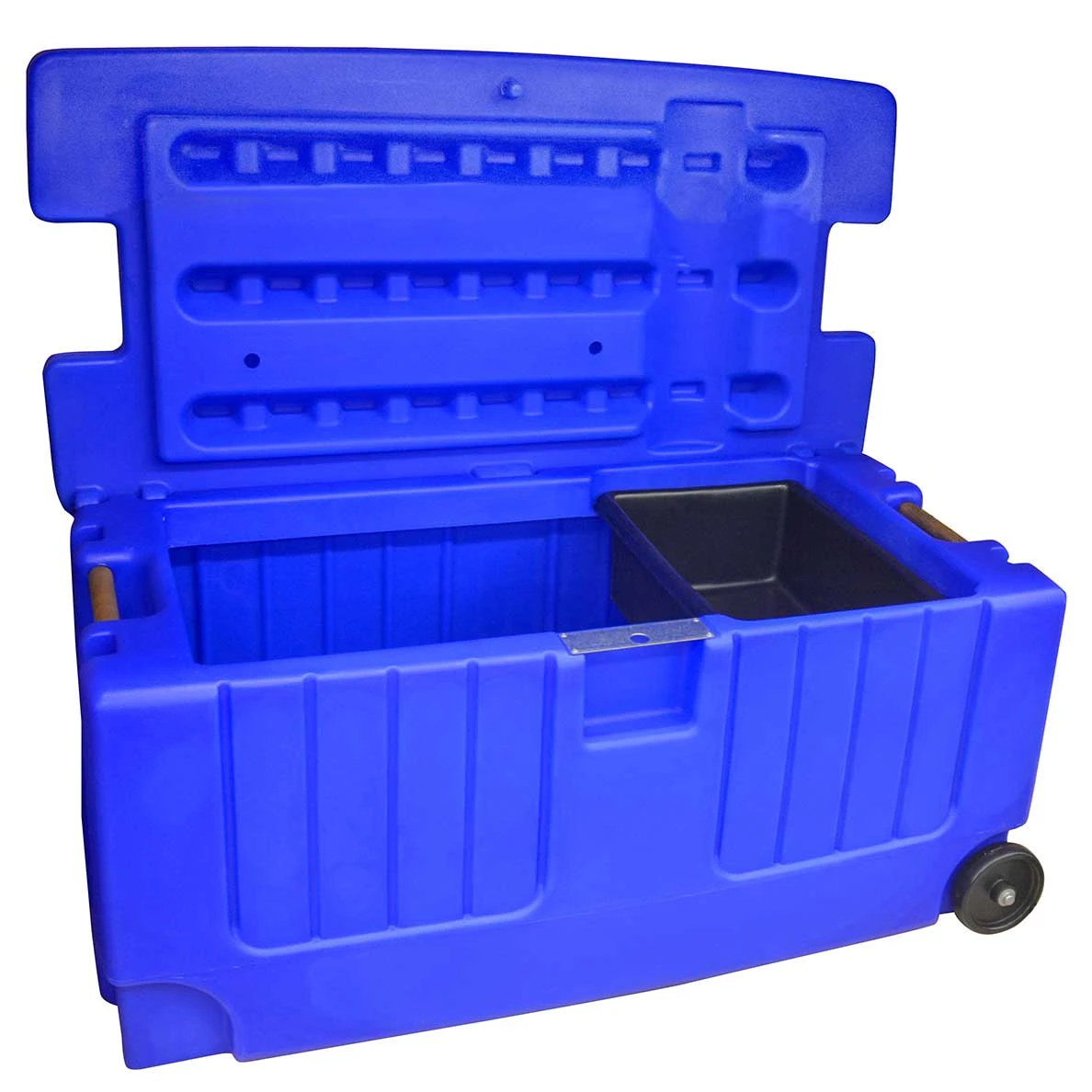 Sturdy tack trunk by Horsemen’s Pride to keep all of your tack and supplies organized. The hinged lid can be padlocked to keep your tack safe! Great for traveling, barn and horse shows!