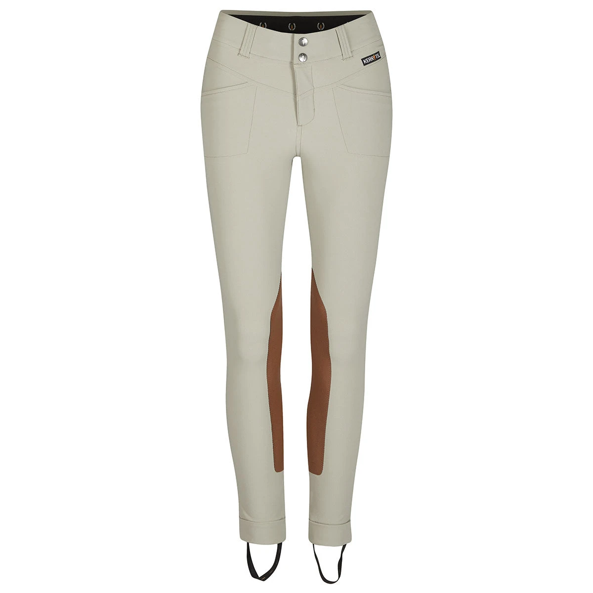 Kerrits Crossover Extended Knee Girls Jod. Dynamic Extreme fabric technology, riding-specific R&D, and precision fit have all gone into the development of this breech. The traditional silhouette is detailed with flattering pocket seaming and a tailored front-fly construction. Internal elastic at the waist provides comfort and gentle support. Proprietary knee patches offer leather-like grip in a washable, Eco-friendly alternative. Front fly, snap closure.