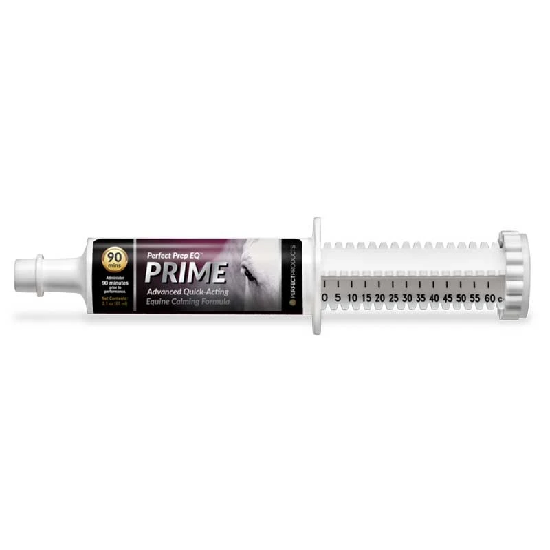 Perfect Product’s most advanced and quick acting calming paste. Goes to work quickly within 60 minutes and effects last up to 6 hours. Helps to keep your horse focus, without making them dull and keep them performance ready. Can be used with other Perfect Prep Products. EQ Prime contains no prohibited substances and is very palatable. The 60cc syringe contains 1 to 2 doses. You can administer the whole tube or half a tube, depending on your horse and effects desired.